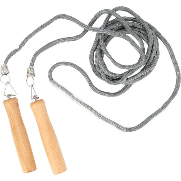 Classic jump rope with wooden handles, ideal for agility and cardio workouts. Material: Wood, PVC rope